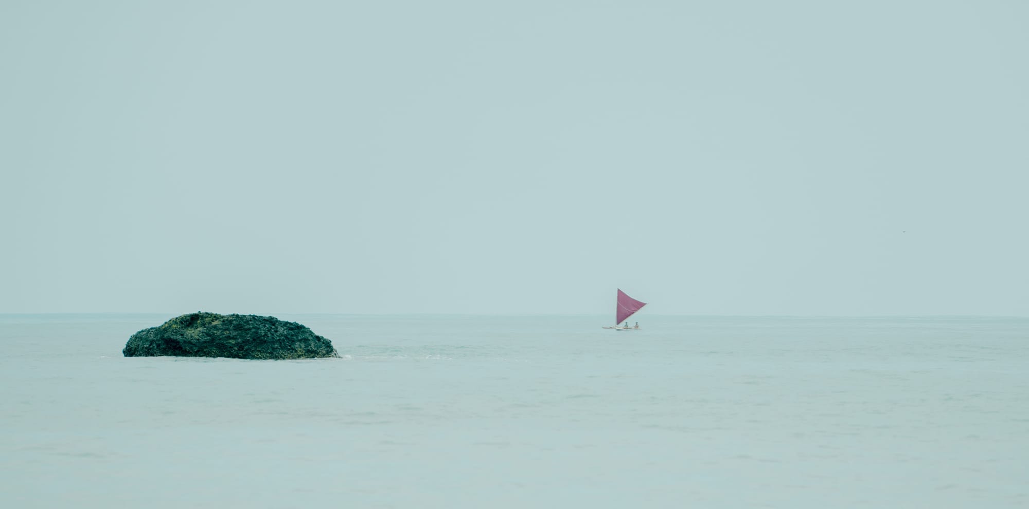 離陸地已經越來越近,風漸漸停了下來,船非常緩慢地前進,我們還沒有找到那棵礁石。冠宇決定就在這裡和Lafin說話。